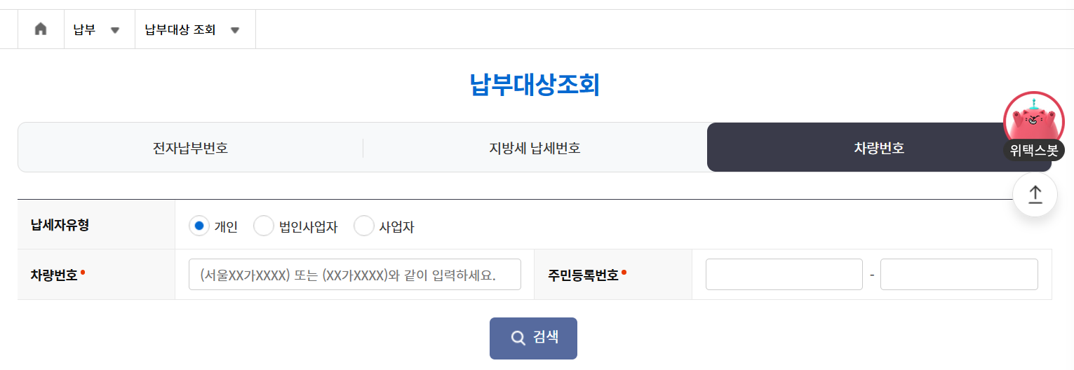 위택스에서 과태료를 조회한 후, 바로 납부도 가능합니다.