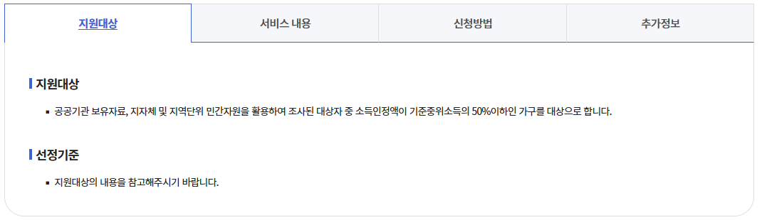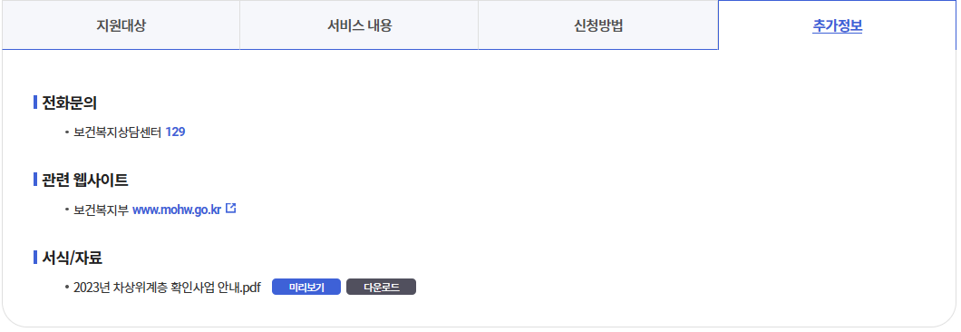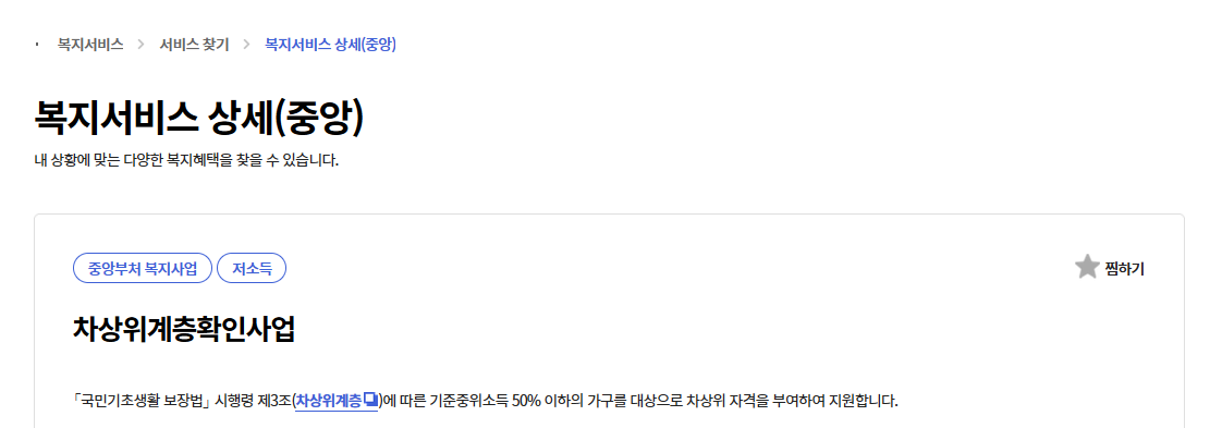 - "복지 서비스 신청" 메뉴에서 차상위계층 관련 항목 선택