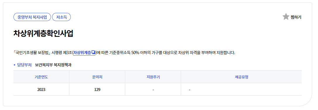 차상위계층은 법적으로 "중위소득 50% 이하"를 기준으로 하고 있으므로 본인의 가구가 여기에 속하는지 확인하셔야 합니다.