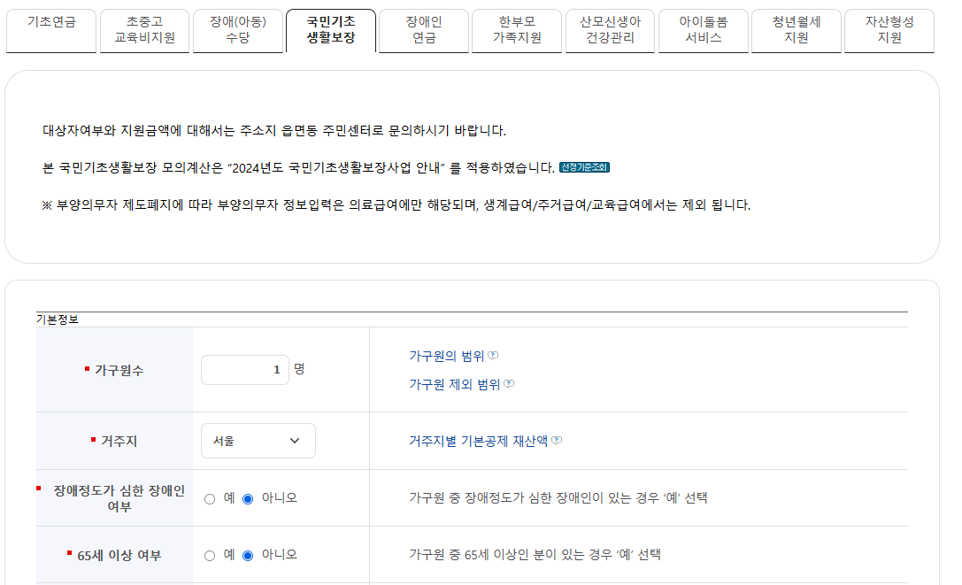 장애인, 한부모 가정, 조손 가정 등은 별도의 기준이 적용됩니다.