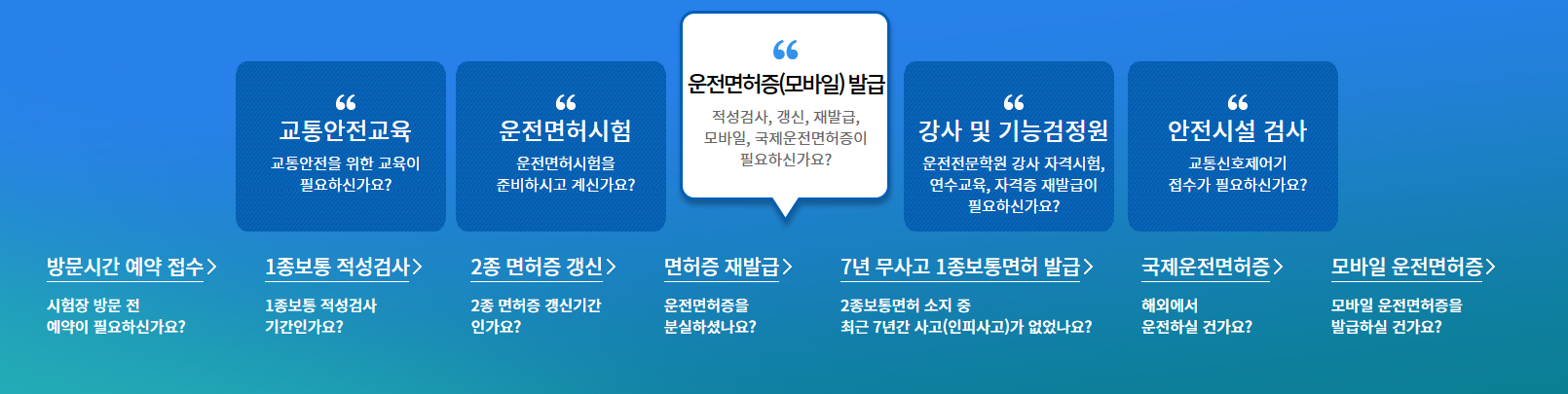 운전면허 메뉴 선택: