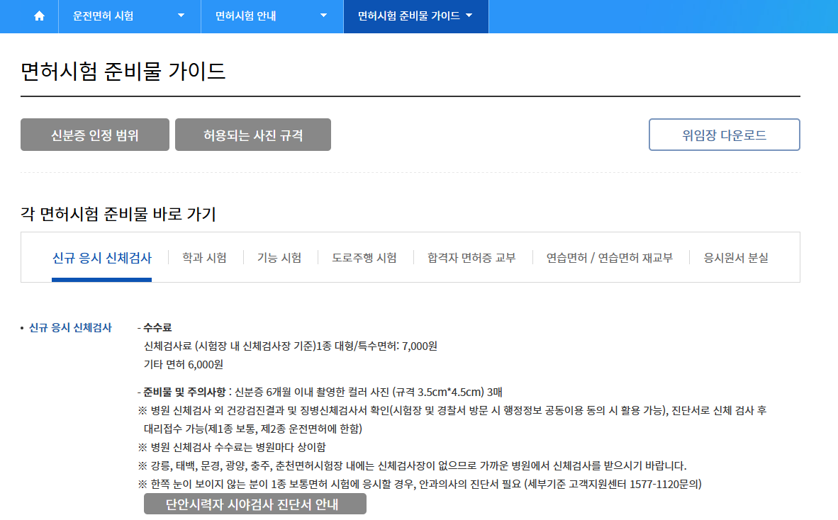운전면허증 적성검사 준비물