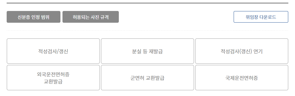 "운전면허 적성검사/갱신" 항목을 선택합니다.