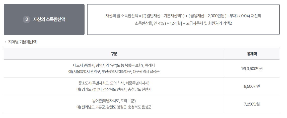 - 단독가구: 월 소득인정액 202만 원 이하