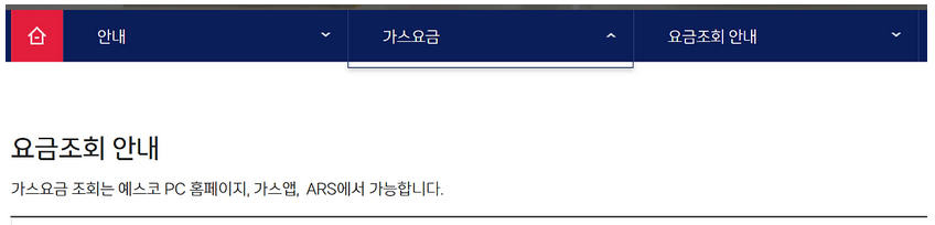 본인의 도시가스회사를 찾았다면 해당 홈페이지에 접속합니다. 메뉴에서 "요금조회/납부" 탭을 클릭하여 조회가능합니다.