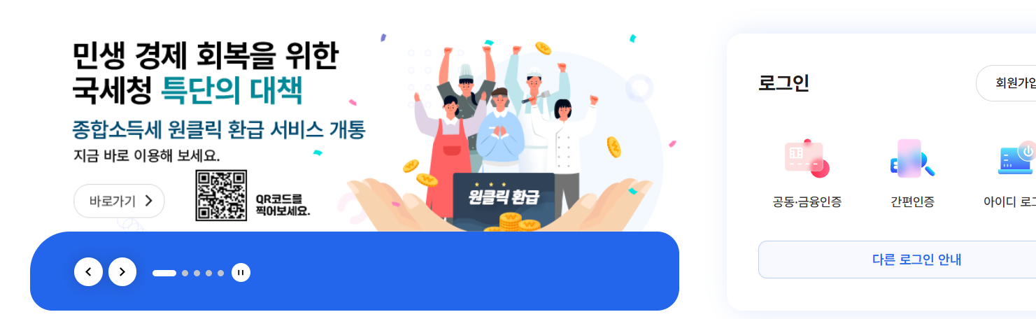 국세청 홈택스에서는 로그인 후 환급금 내역을 바로 확인할 수 있습니다.
