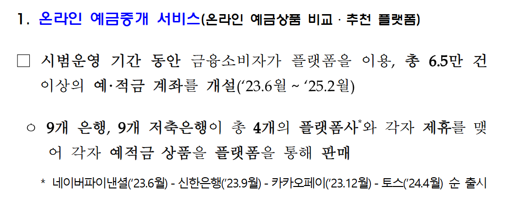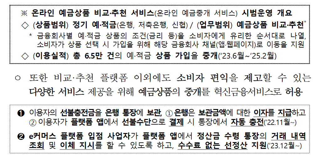 정식 제도화 이후에는 정기예금이나 적금에만 국한되지 않고, 파킹통장과 같은 수시입출식 상품까지도 온라인에서 비교하고 가입할 수 있게 됩니다.