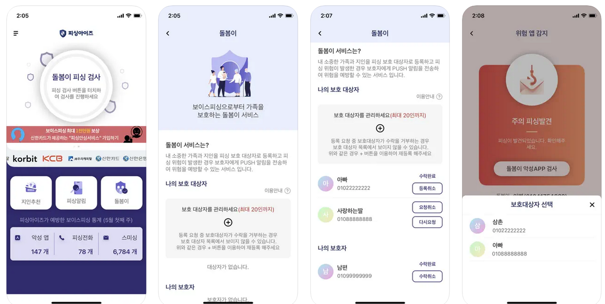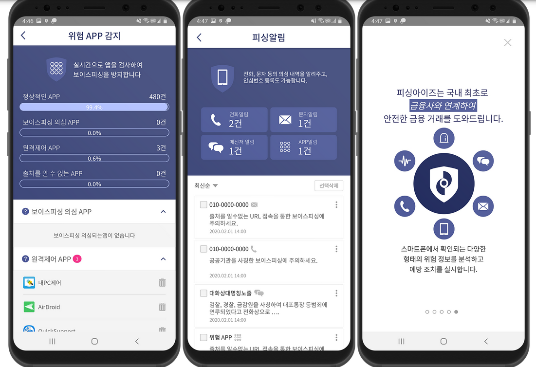 최근 발생한 보이스 피싱, 문자 사기 유형에 대한 정보도 함께 제공되며, 이를 통해 사용자 스스로 경각심을 높일 수 있도록 돕습니다.