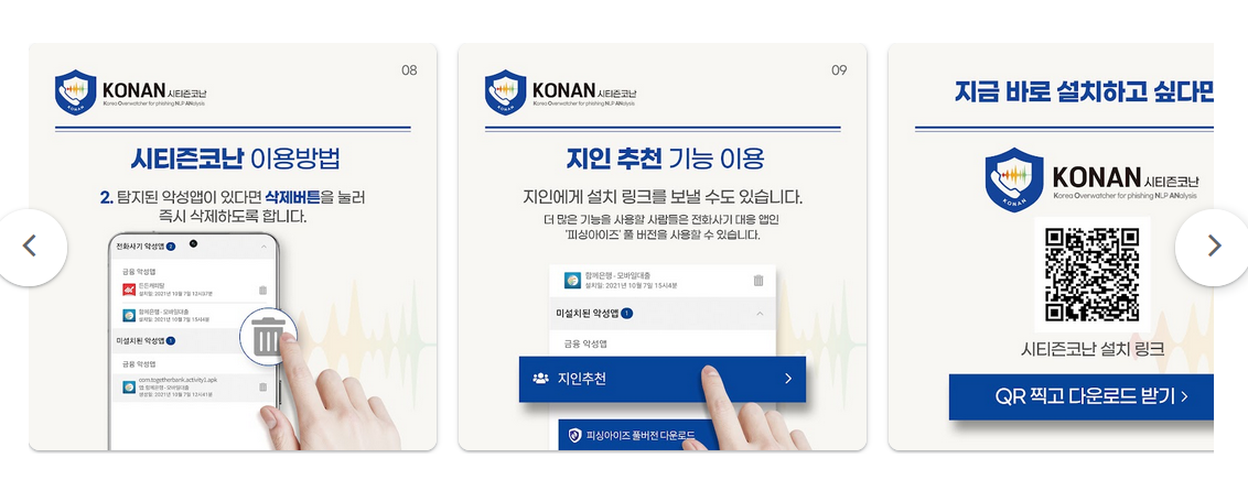 경찰청에서 공식 출시한 ‘시티즌 코난(Citizen Conan)’ 앱은 이러한 사이버 범죄에 대응하기 위한 스마트폰 전용 보안 앱입니다. 특히 스미싱, 보이스피싱 등의 사기 수법에 대해 빠르게 감지하고, 악성 앱 설치나 의심 링크를 실시간으로 탐지하여 사용자에게 알림을 제공하는 기능을 갖추고 있습니다.