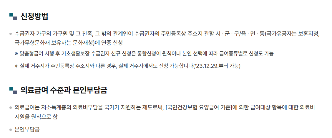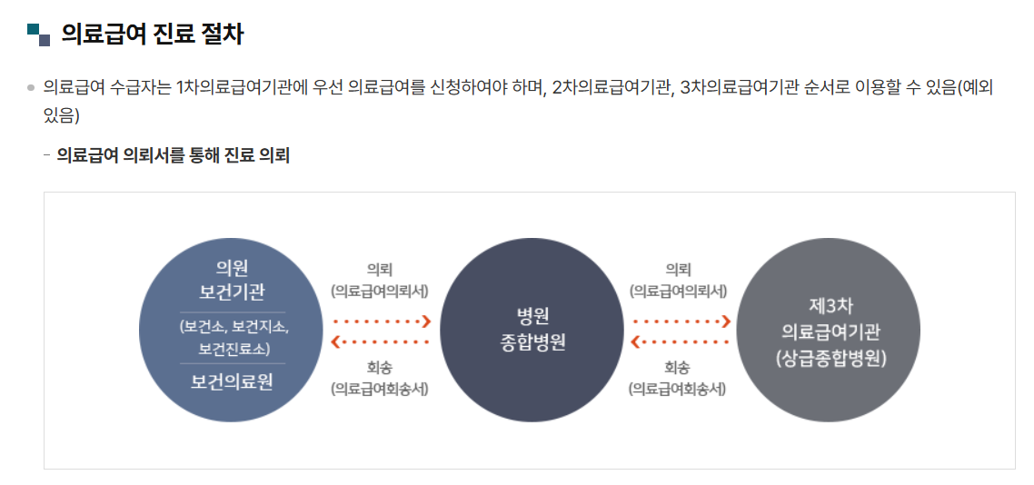 - 의료급여기관(병원, 약국 등)을 통해 혜택 제공