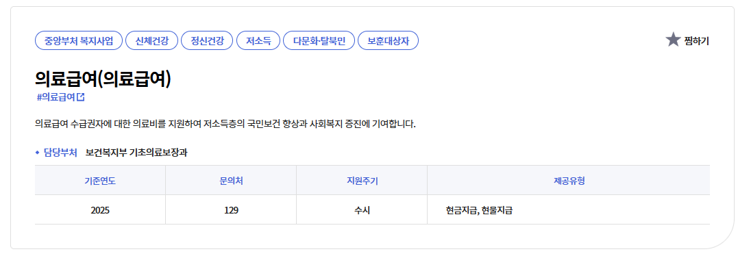 - 건강검진: 의료급여 대상자 전용 검진 제공