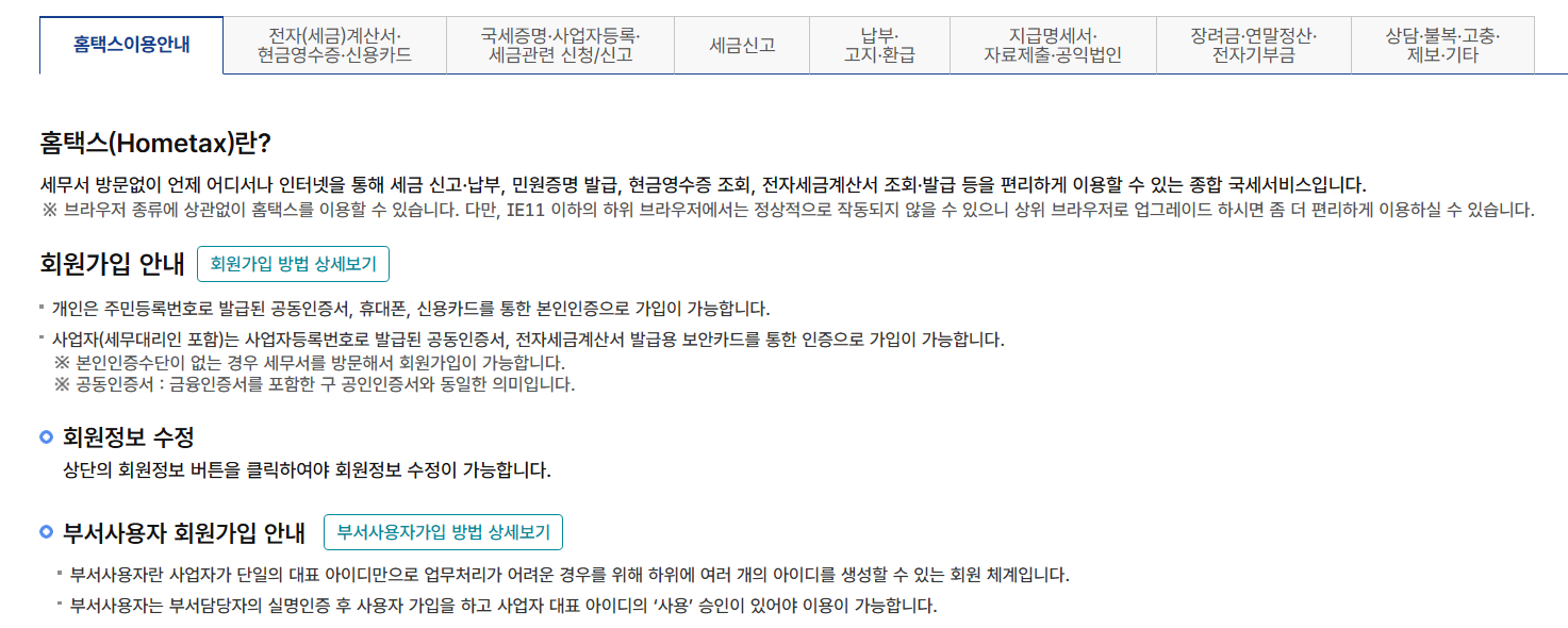 먼저 인터넷 브라우저를 열고 홈택스에 접속합니다. 공동인증서, 간편인증(카카오, PASS, 삼성페이 등)으로 로그인합니다.