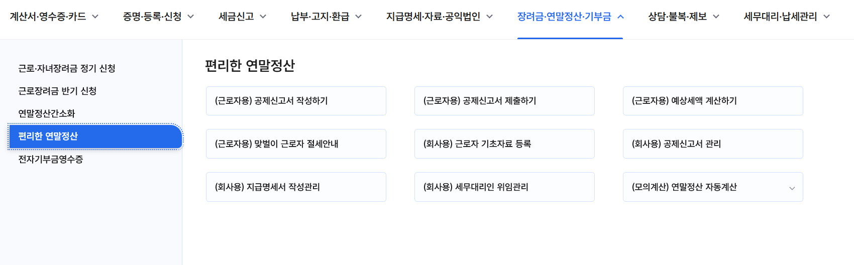 '연말정산 경정청구' 또는 '종합소득세 경정청구' 중 해당되는 항목을 선택합니다.