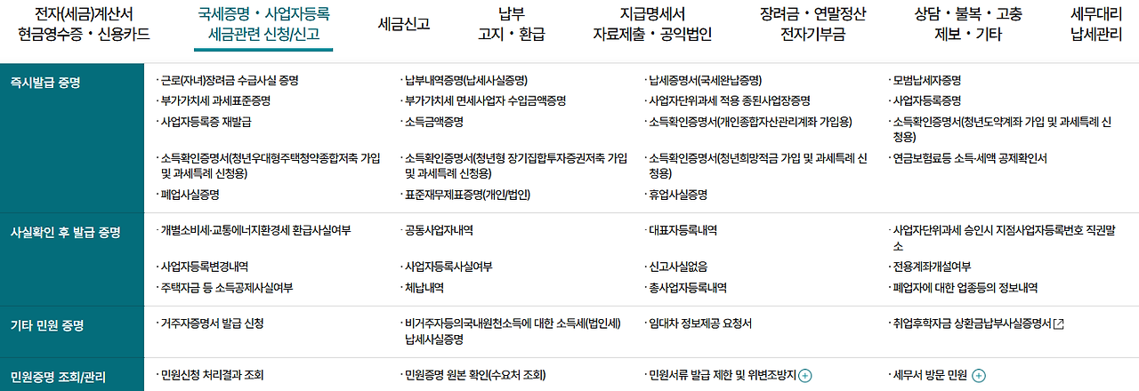 홈택스에서는 사업자의 과세 유형(일반, 간이, 면세 등)과 사업자 상태(정상, 휴업, 폐업 등)를 조회할 수 있습니다. 과세 유형이 변경된 경우 변경된 시점도 확인 가능하며, 세금계산서 발급 여부도 조회할 수 있습니다.