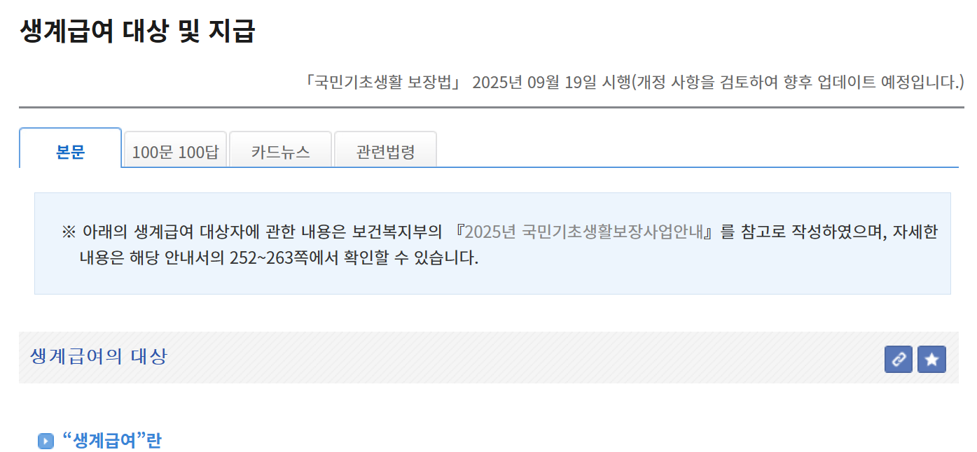 2. 2025년 생계급여 자격 기준
