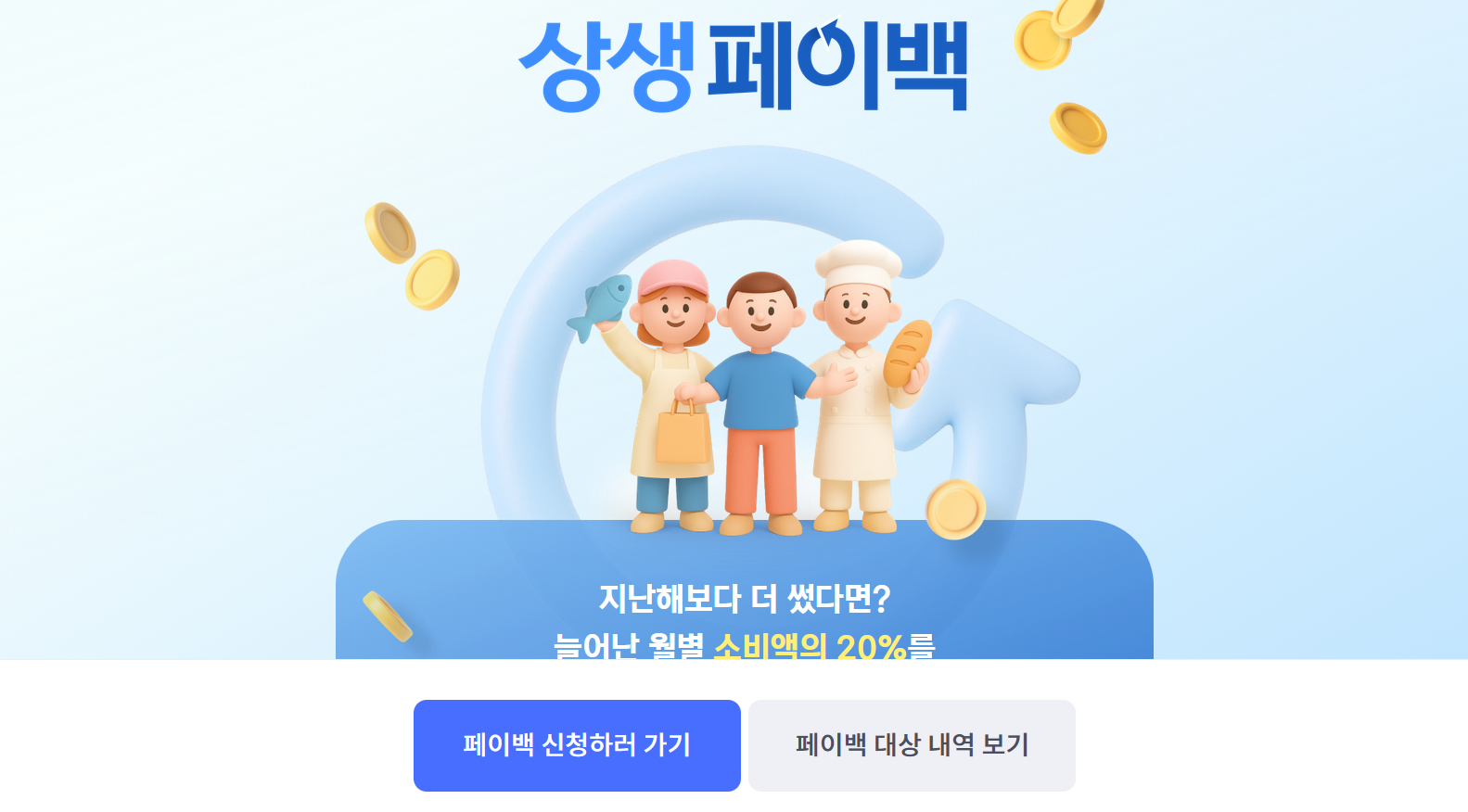상생페이 신청 시 2024년 월평균 카드 소비액보다 증가한 금액의 20%를 환급받을 수 있으며, 월 최대 10만 원, 3개월간 최대 30만 원까지 지원됩니다.
